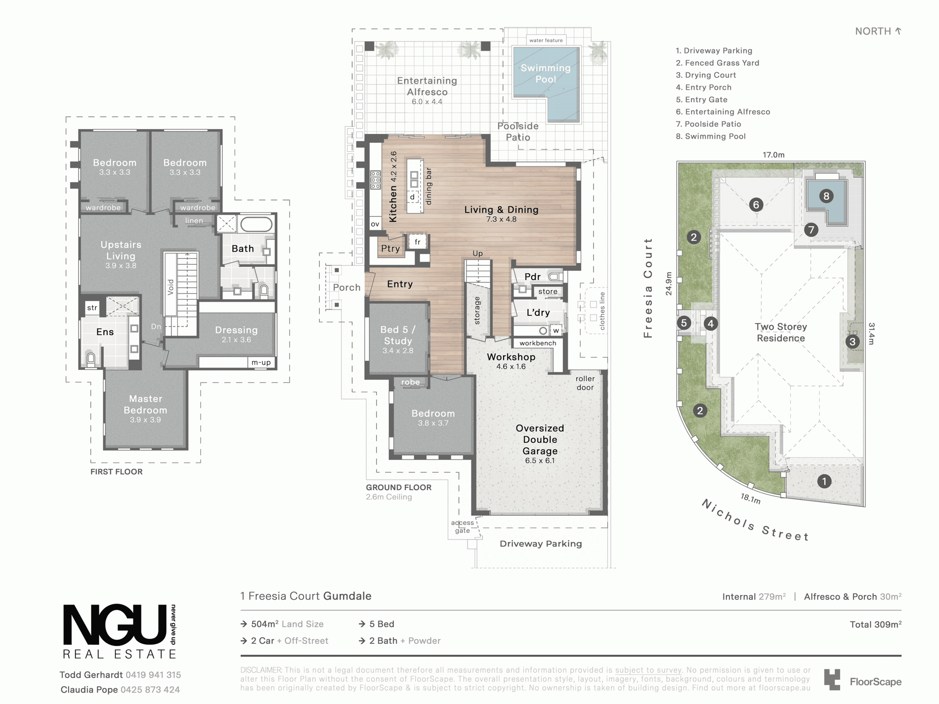 - Open plan living and dining that flows to the alfresco and has views of the pool