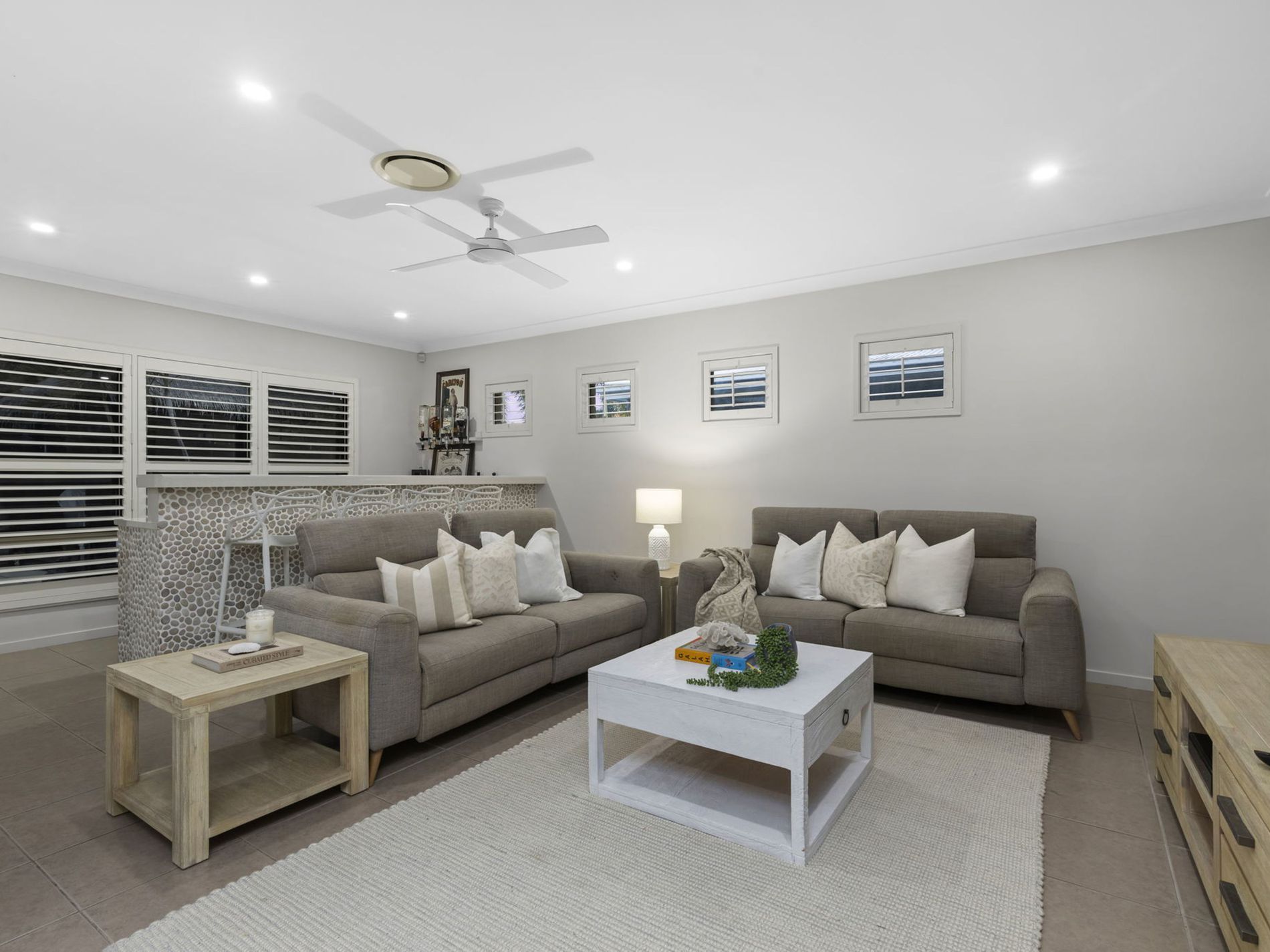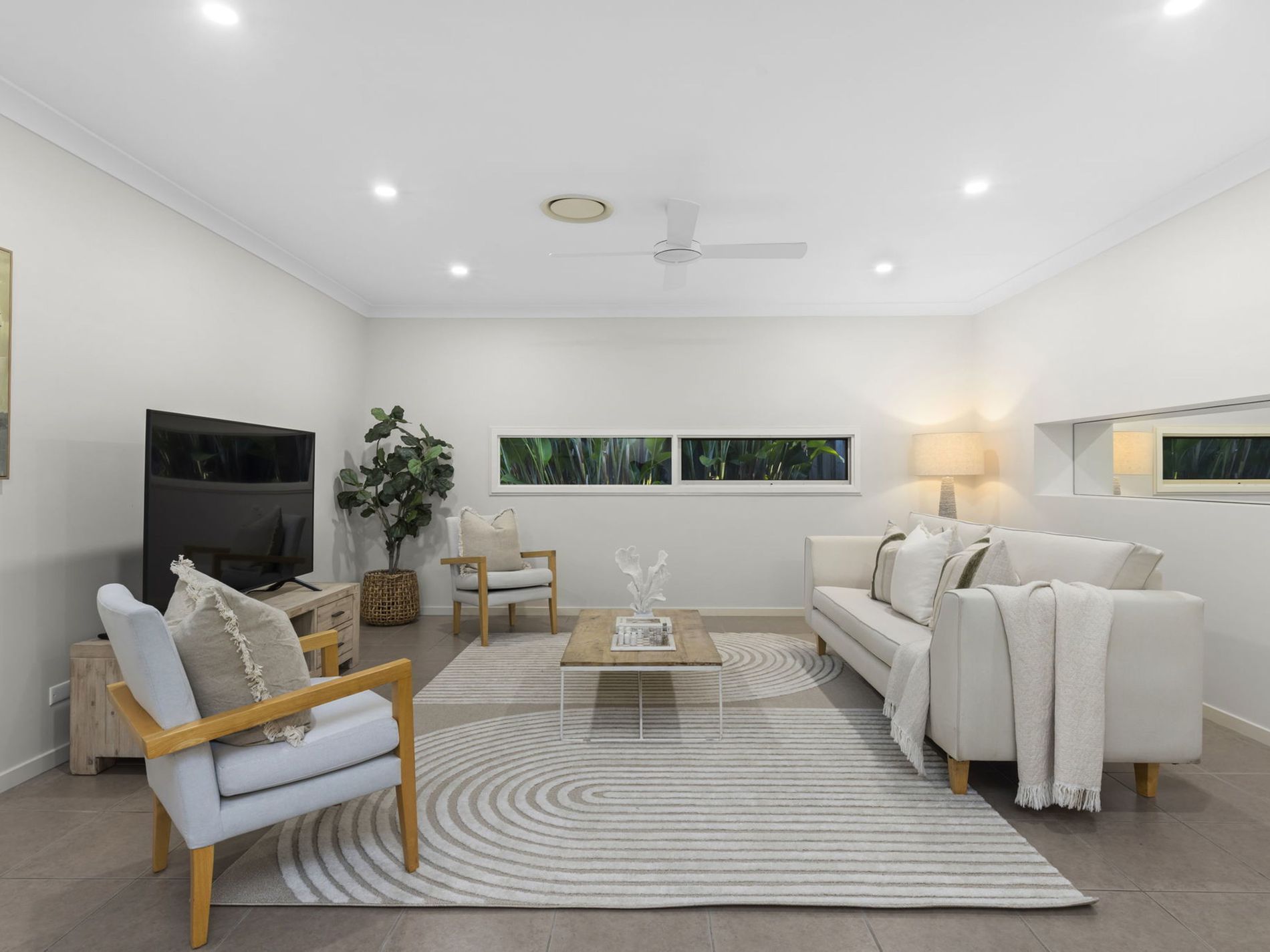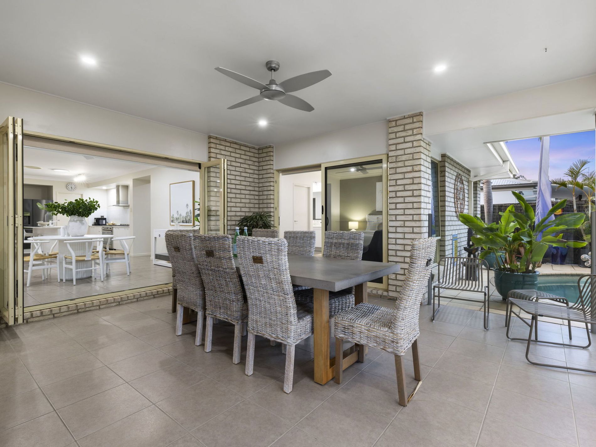 - Open plan living and dining flowing to the tropical low maintence backyard