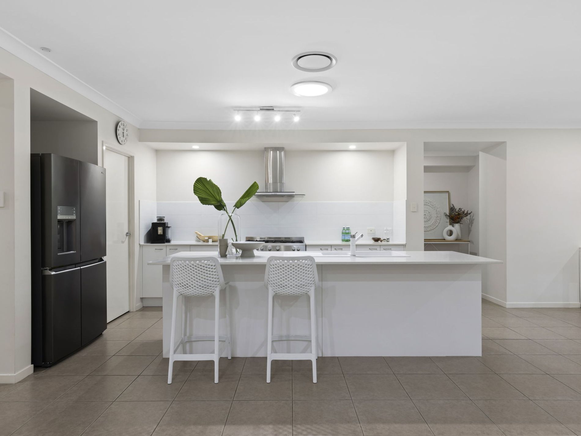 Step inside and be welcomed by the light-filled open plan kitchen, dining, and living spaces that flow seamlessly together, creating a central hub for everyday living and effortless entertaining. The modern kitchen is well-appointed with sleek finishes, abundant storage, and a breakfast bar.