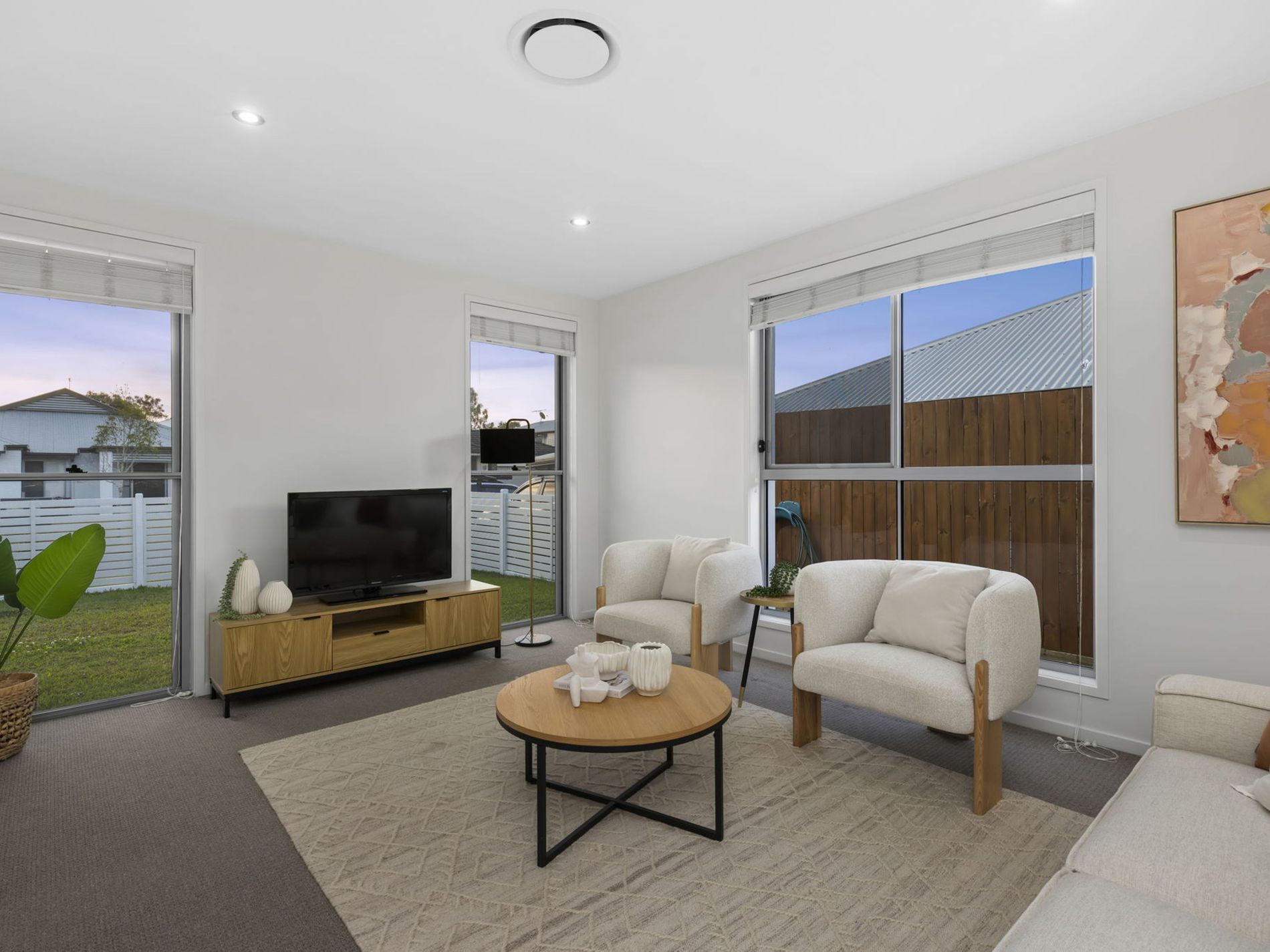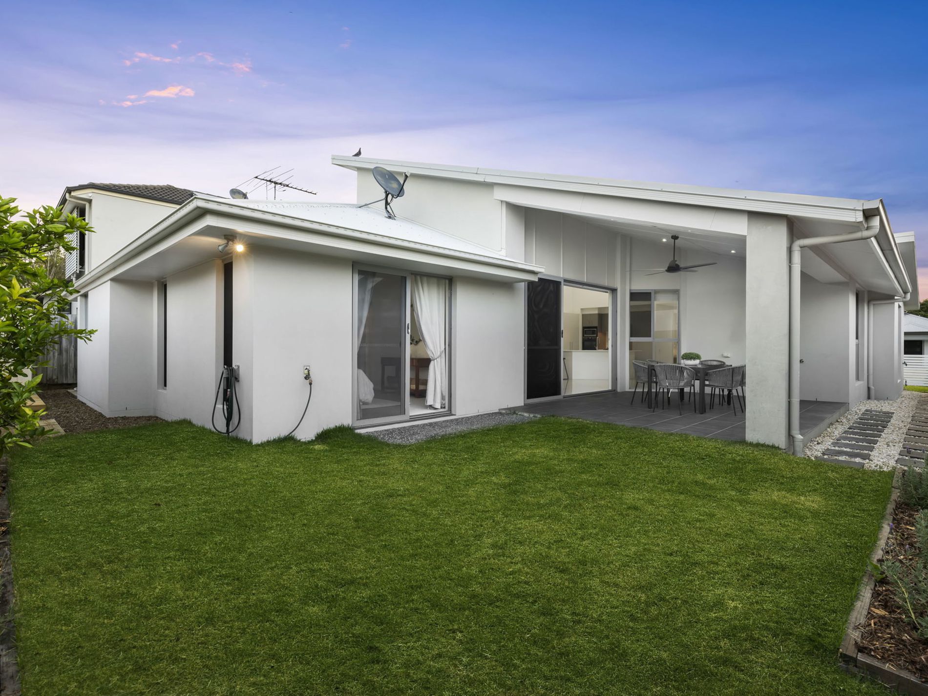 - Alfresco overlooks the easy maintenance backyard