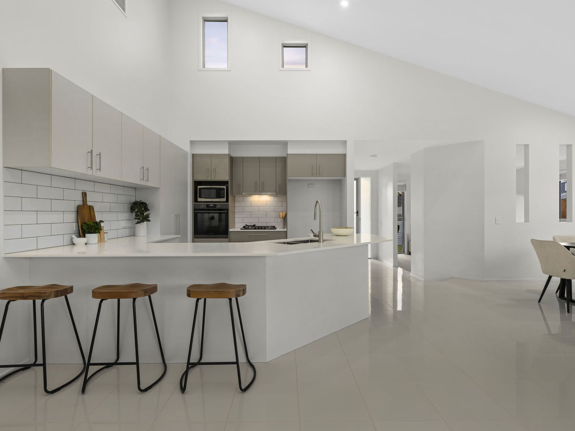 - High raked ceilings as a feature in the main living