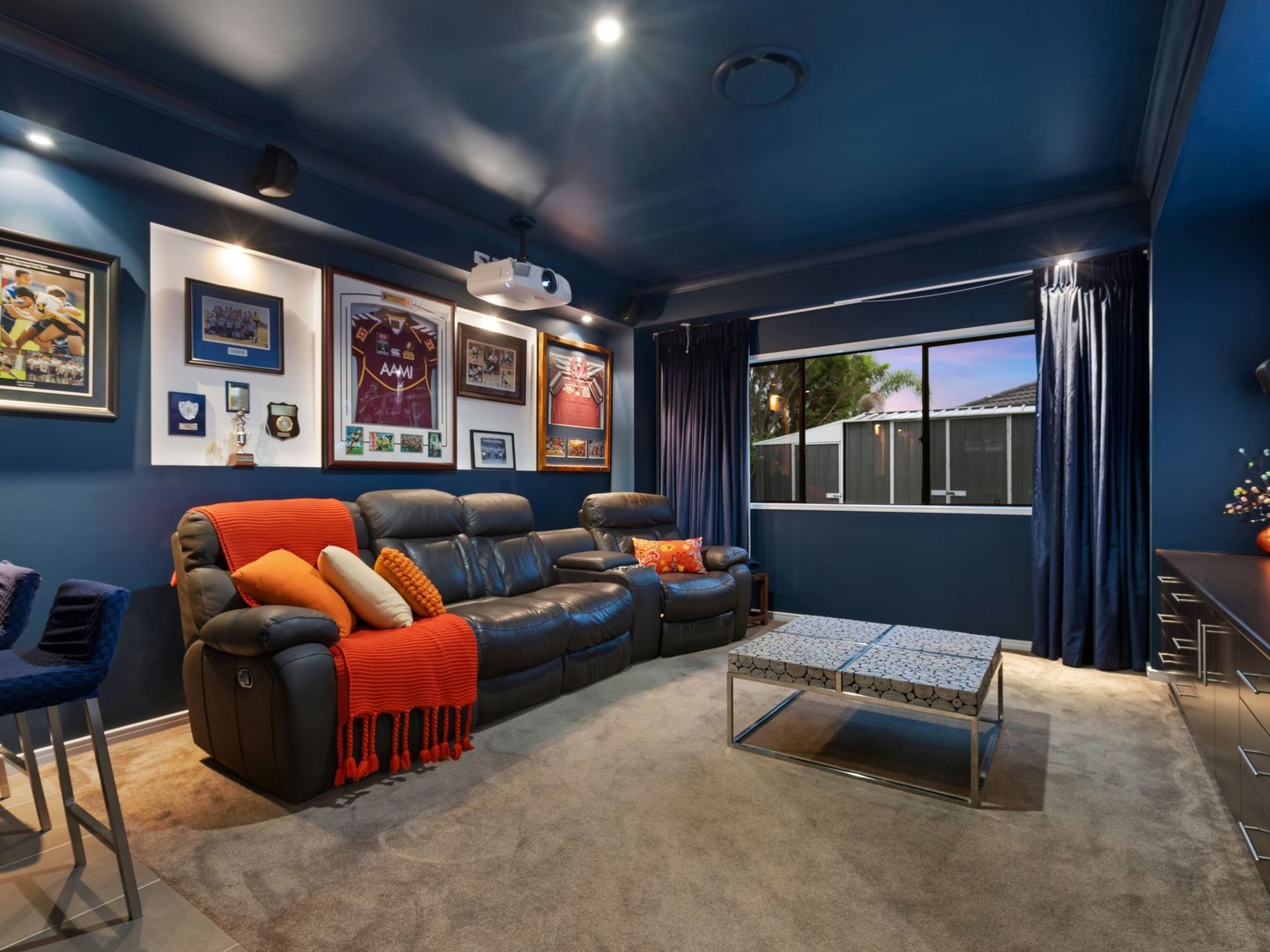 - A fully fitted cinema with wet bar, cabinetry, projector and screen