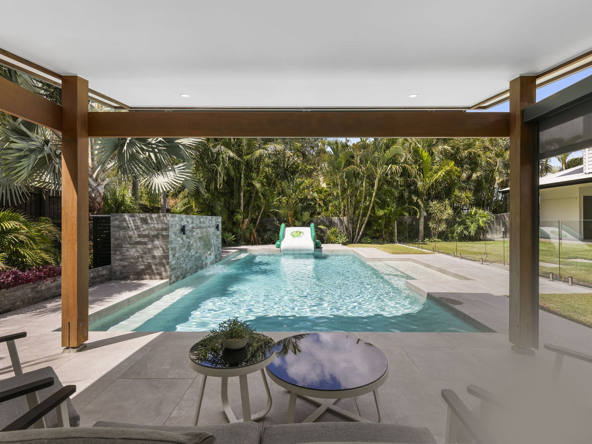 - 10m x 5m heated pool with electric awning for additional shade, remote & app controlled