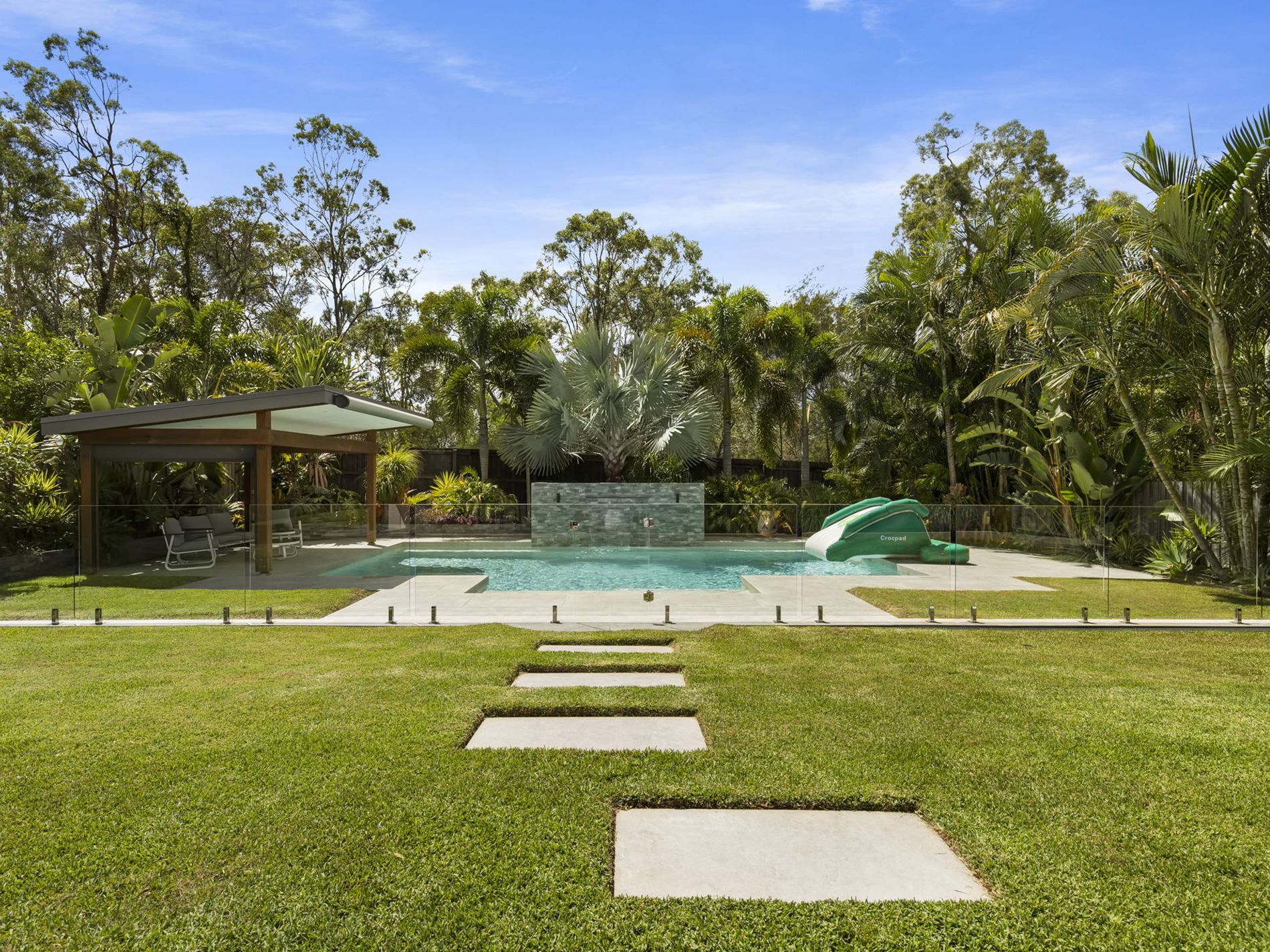 - Gazebo overlooking the pool which has a water feature and stunning landscaping