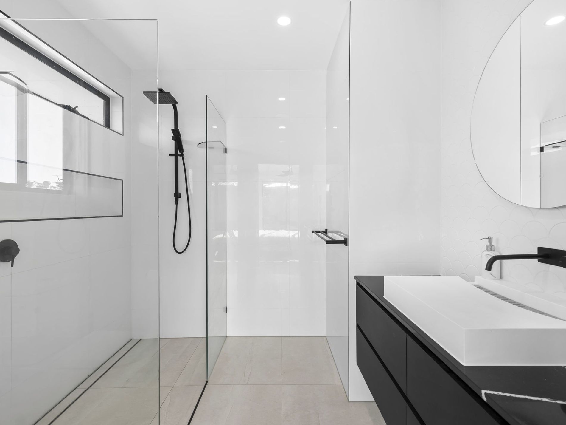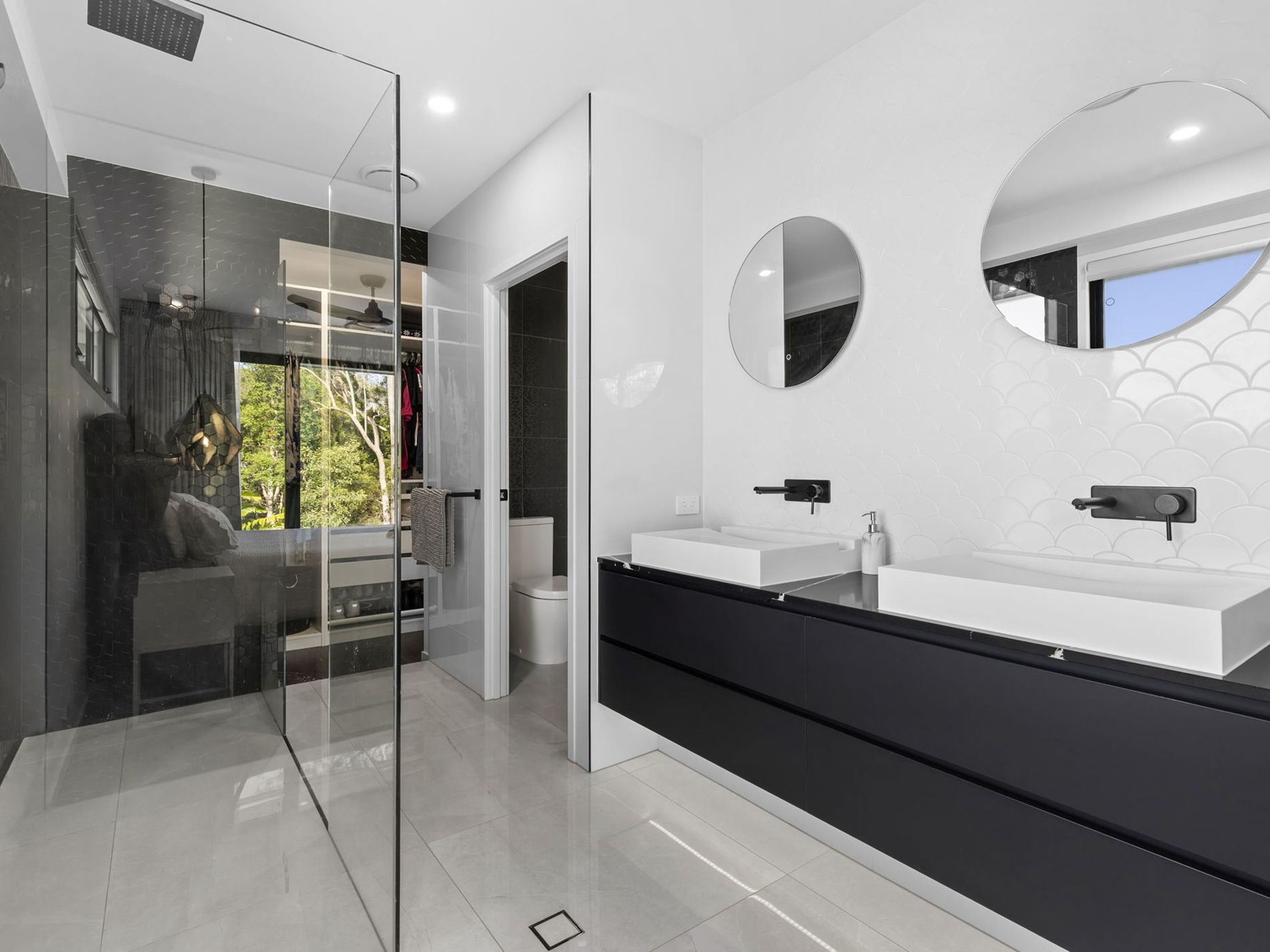 - Bathrooms all feature floor to ceiling tiling and luxury finishes